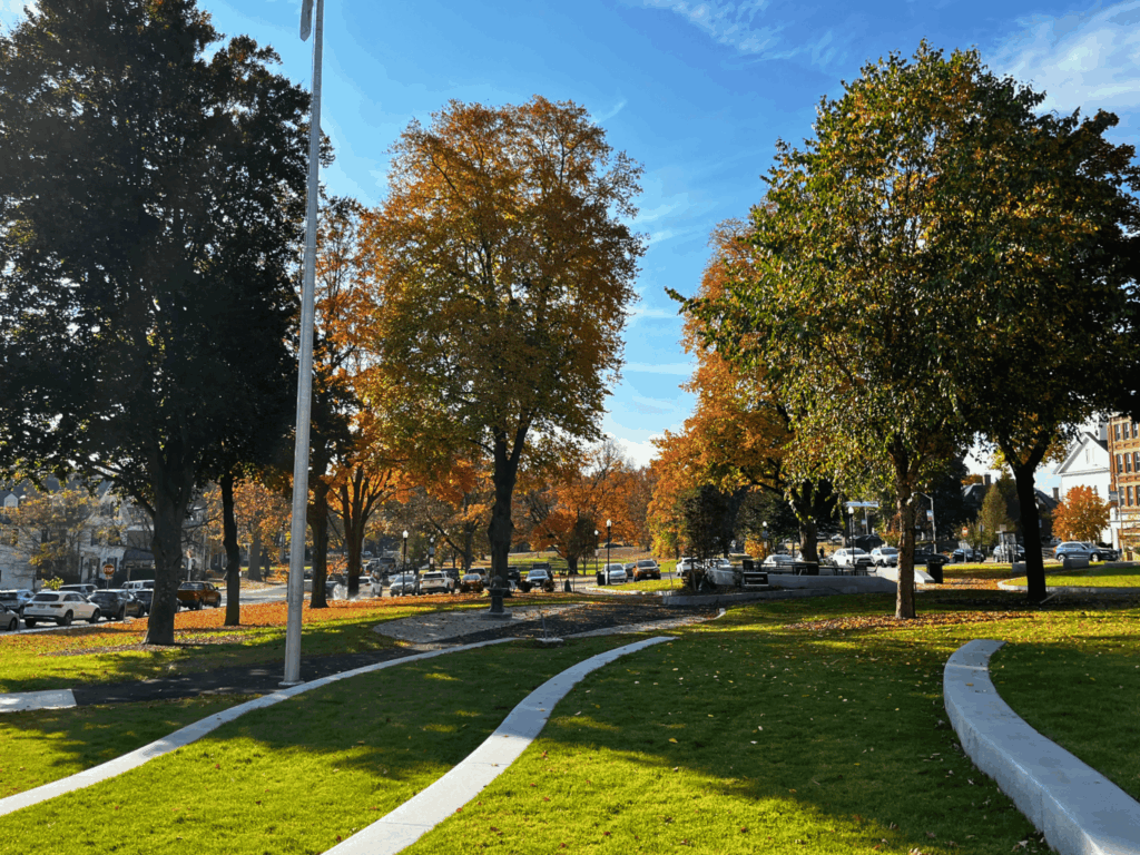 In 2013, the town set out to transform the North Common into a more inviting and vibrant destination for residents and visitors alike. The vision was to create a lively gathering place that would draw people to downtown Amherst for community events, civic activities, shopping, and dining at our local small businesses. The now completed design incorporates ADA accessible walkways, a new bus stop on Main Street, small seating areas, new landscaping, improved storm water management, and a plaza in front of Town Hall for gatherings and events.