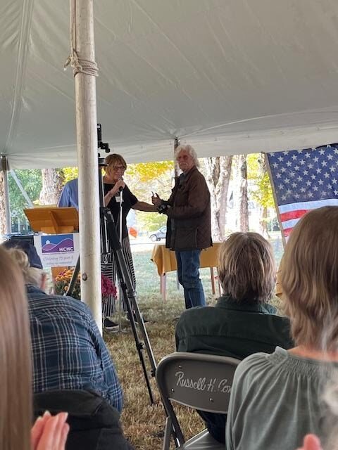 Coming from the U.K., a country that prided itself on free health care from cradle to grave through its National Health Service), I’ve been a fan of this kind of integrated medical care. The setting for the HCHC anniversary celebration was under a large tent on the grounds of the Worthington Historical Society in one of Hampshire County’s most picturesque hilltowns. It was a bright, early fall day, sunny with clear skies. On arrival, there were family-friendly activities like face-painting, several raffles, refreshments, and a live band that included staff from the regional CDC.