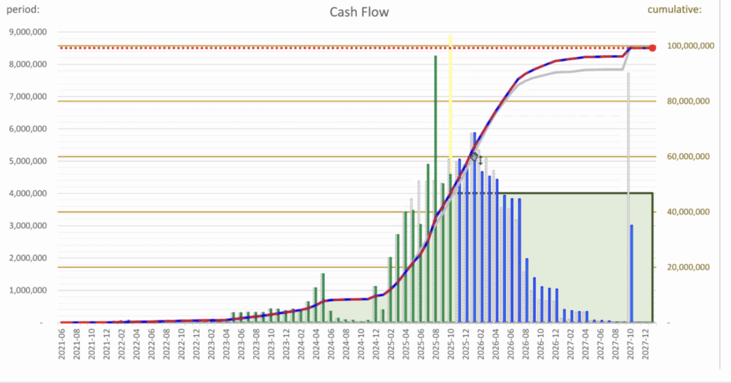 There is $1.9 million in retainage (payments that are withheld in order to incentivize satisfactory completion of work). There remains over $10 million in “uncommitted”, or contingency, funds. Monthly expenses are expected to drop in August 2026 as the volume of work decreases.