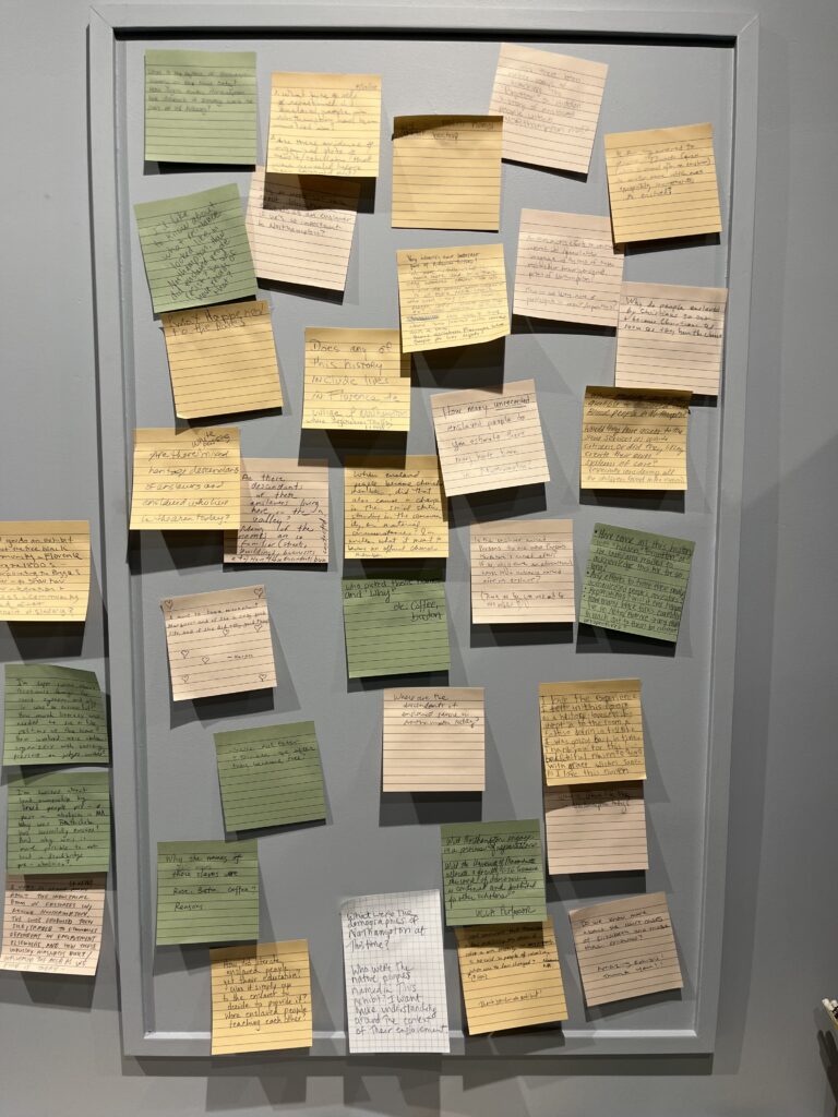 Clearly, there is ample opportunity to learn more. The documents exist and so does the expertise. A counterpart to the Northampton exhibit would be a wonderful addition to our town histories. At the Historic Northampton show, there is a talk-back board that also suggests more to come.