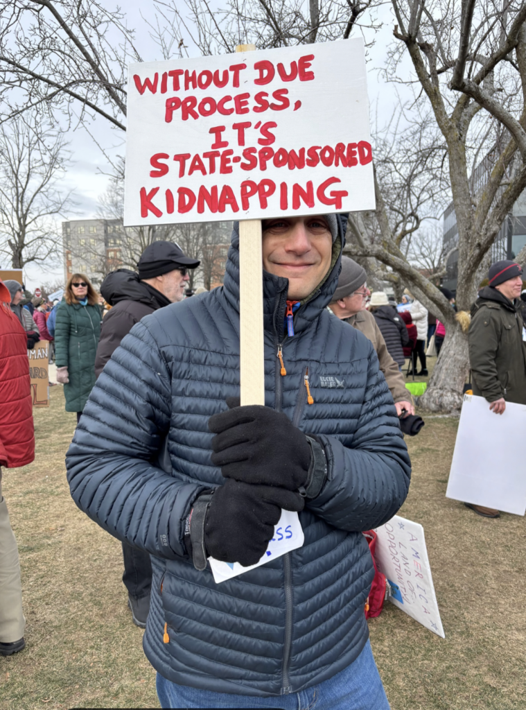On Wednesday, April 22, another group from Western Mass will travel by carpool to Burlington to mark the one-year anniversary of the first standout. If you would like information on how to join the group trip, email me at msmith4@bsu.edu. If you plan to travel by yourself to the ICE field office at 1000 District Avenue, in Burlington, please be aware that the owners of the Mall parking lot are not in sympathy with the protests. If you park in that mall lot or by any other business along District Ave, your car may be towed, especially if you’re seen leaving the car with a sign for the protest. We’re invited to use the signs available at the rally to avoid that problem.